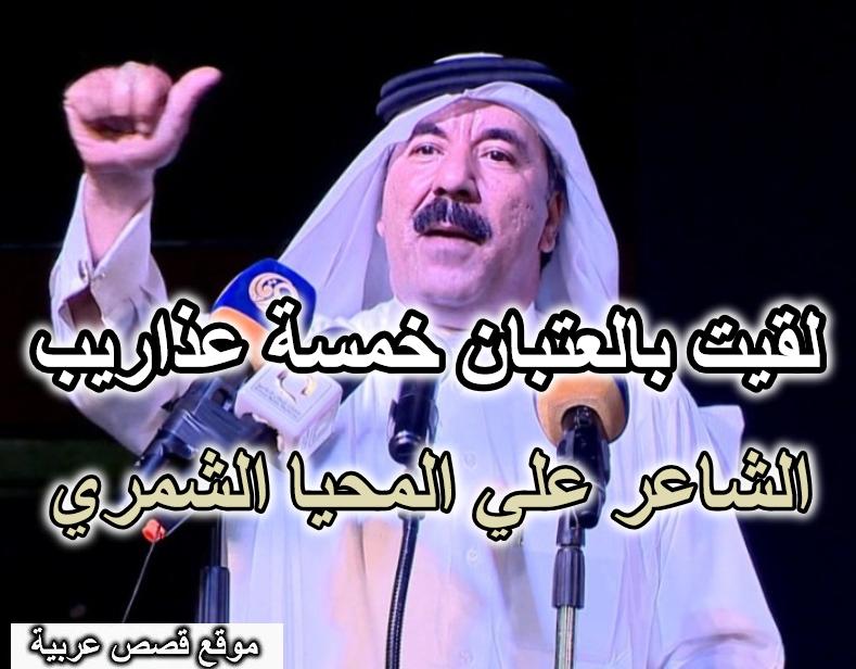 وفي حوار مع الشاعر علي المحيا قال أن قبيلة عتيبة قبيله عريقة الاصل والمنشاء وعلاقتي مع رجال عتيبة لها اكثر من 40 عام وما لقيت منهم الا الطيب والفزعة وهم اصحاب مواقف رجوليه مشهوده في ساحات المرجله ولها من المفاخر ما يعادل رصيد بنوك العالم والف نعم فيهم ولايلحقنا الشك في طيب رجال عتيبه ومواقفهم مع الرجال ويستاهلون الكثير والكثيرمن القصيد وقصيدتي لقيت بالعتبان خمسة عذاريب هي واحدة مما قلت في رجال عتيبه حيث كتبت عده قصائد في قبيلة عتيبة ومن ضمن قصائدي قلت