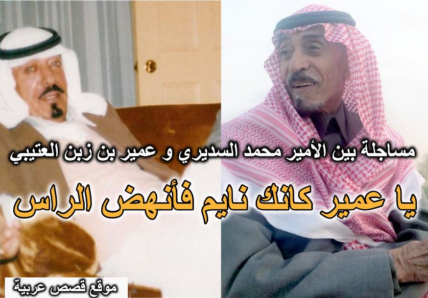 مساجلة شعرية مكتوبة بين الأمير محمد بن أحمد السديري والشاعر عمير بن زبن بن عمير العتيبي يا عمير كانك نايم فأنهض الراس